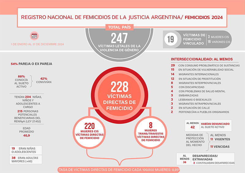 En 2024 hubo 247 víctimas letales de violencia de género en el país